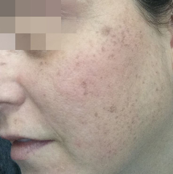 小鼻や頬の赤み等は「毛細血管モード」、シミの箇所には「しみ・色素沈着モード」で顔全体を重ねてしっかりとダブル照射を行っております。