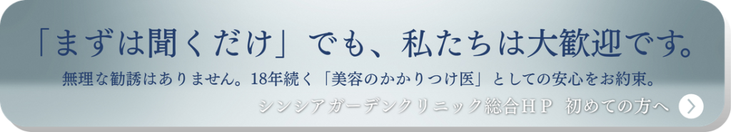 シンシアガーデンクリニックでは、今この時のご不安を解消することはもちろん、5年後、10年後もお客様が自然な自分自身でいられるよう、先を見据えた治療計画を大切にしています。