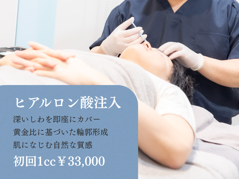 - ヒアルロン酸を気になる部位に注入し、隆起させることで、シワやハリを改善する方法です。注射で注入するだけという、安全性と手軽さを兼ね備えた施術です。